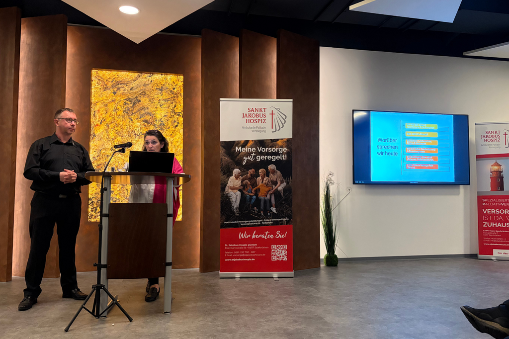 Die Veranstaltung, organisiert von der St. Jakobus Hospiz gGmbH Saarbrücken in Kooperation mit Pietät von Rüden, war sehr gut besucht. Zahlreiche Interessierte folgten der Einladung, sich behutsam und zugleich informativ mit Fragen rund um Bestattungsvorsorge, Abschiedskultur und persönliche Wünsche auseinanderzusetzen.
