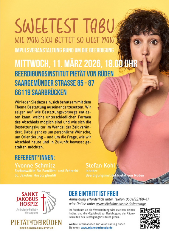 Eine Anmeldung zur Veranstaltung ist erforderlich unter Telefon 0681/92700-47 oder Online unter www.stjakobushospiz.de/vorsorge.